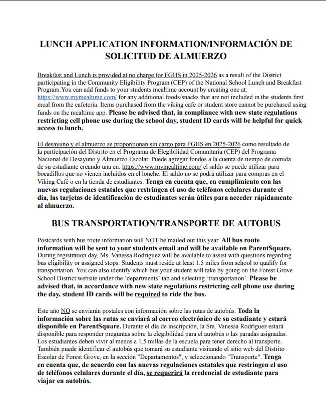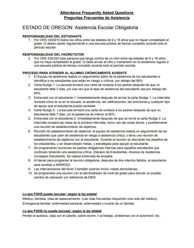 Esperamos que estos cambios sean útiles y ahorran tiempo para agilizar los procesos de registro. Si tiene alguna pregunta, llame a la oficina principal de la escuela secundaria al 503-359-2432. Esta información se publicará en nuestro sitio web de FGHS y Parent Square como un recurso con enlaces en vivo.